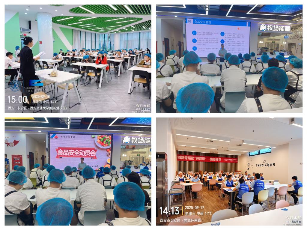 9月15日至19日,立异港分析办理办事核心环绕食物平安、反餐饮华侈,正在各食堂集中开展以“尚德守法 共享食安”为从题的“食物平安宣传周”系列勾当。开展普遍带动。9月15日,立异港分析办理办事核心组织召开立异港食堂食物平安工做带动会。勾当现场,核心从任巩滨做带动讲话,食堂办理人员及工做人员参会,厨师代表对食堂食物平安工做做讲话,各餐饮公司签定《立异港食堂秋季食物平安义务书》。