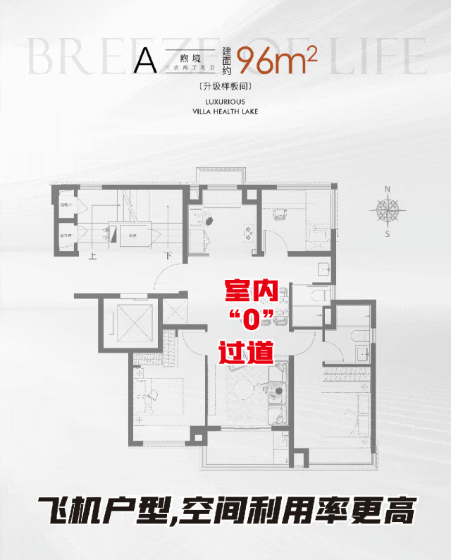 项目从力户型建面约96㎡3房2厅2卫,这是一个功能性和标准感完满连系的明星户型。户型三开间朝南、室内“3个飘窗+1个270°采光窗面+1阳台”、再加上。